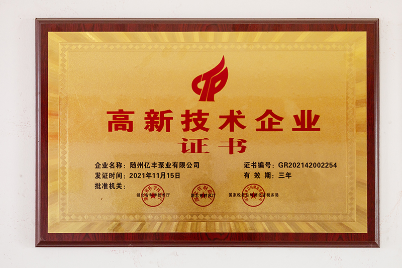 隨州億豐泵業(yè)有限公司位于隨州市曾都經(jīng)濟開發(fā)區(qū),建筑面積15000平方米,公司現(xiàn)有大學文憑以上的35人、技術人員25人(高級職稱5人、中級職稱以上27人)。公司自成立以來先后獲得高新技術企業(yè)、“專精特新”小巨人企業(yè)、隱形冠軍、著名商標等一系列榮譽。